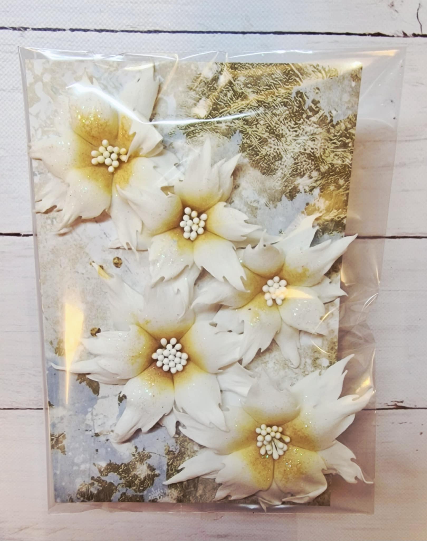 Hver blomst er omhyggelig formet og håndlaget med glitrende detaljer og realistiske støvbærere i midten som gir dem et elegant og naturtro uttrykk.